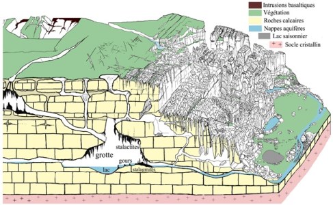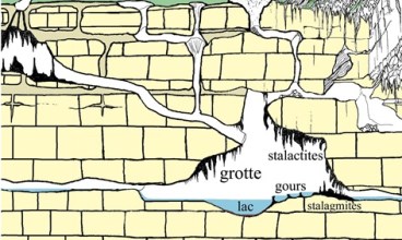 ![]() Schéma d'un réseau endokarstique Source : E. Gonthier et J.M. Valère |