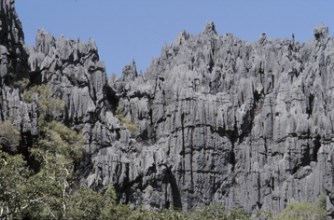 En malgache, les lapiez sont appelés tsingy ; ils sont formés par deux processus particulièrement importants dans la réserve du Namoroka :