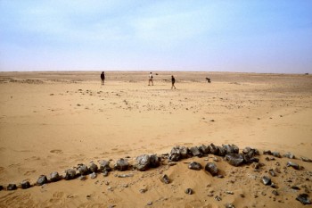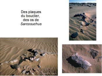 ![]() Quelques fragments de Sarcosuchus dans le désert |