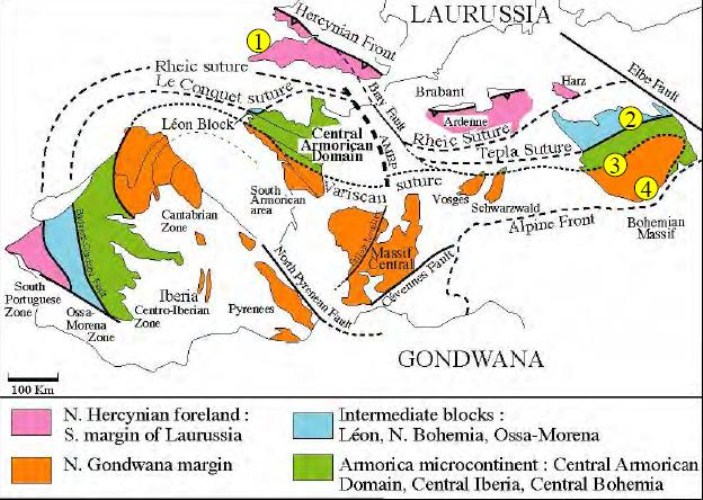 ![]() Les reliques actuelles de la chaîne varisque en Europe |