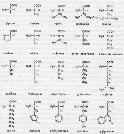 ![]() Les 20 acides aminés |