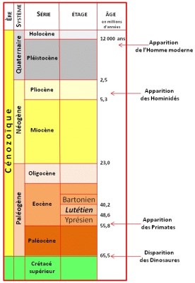 ![]() Echelle stratigraphique du Cénozoïque Source : Jean-Pierre Gély |