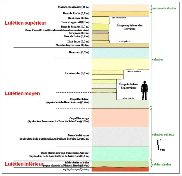 ![]() Coupe stratigraphique du Lutétien dans les Catacombes Source : Jean-Pierre Gély |