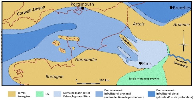 ![]() Carte du bassin de Paris au Lutétien inférieur Source : Jean-Pierre Gély |