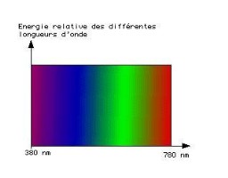 | Le spectre de la lumière blanche est uniforme L'énergie est la même pour toutes les longueurs d'onde. |