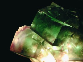 | Fluorite bicolore Imaginons un instant la complexité des transitions énergétiques à l'oeuvre ! Photo JFG : fluorite de Namibie, musée ENSMP |