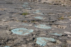 ![]() Sauropode Empreintes peintes en bleu |