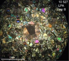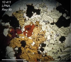L'atlas pétrographique décrit les lames minces étudiées au cours des séminaires. La plupart d'entre elles sont taillées dans des roches prélevées pendant les voyages d'étude de la commission Volcanisme. Chaque lame fait l'objet d'une fiche descriptive de quelques pages. Celle-ci contient la localisation précise du lieu de prélèvement, une description de la structure de la roche et des minéraux observés, et l'identification qui en découle pour la roche replacée dans le contexte géologique du prélèvement. Le tout accompagné des clichés les plus significatifs pris en lumière polarisée naturelle et analysée. A chaque cliché est attribué un repère qui permet à l'observateur de retrouver l'emplacement décrit sur la lame examinée.