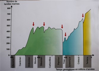 ![]() Les cinq grandes extinctions depuis le Paléozoïque Photo J.-L. Fromont |