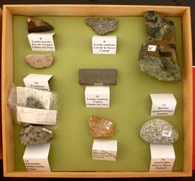 | Vitrines de roches volcaniques et plutoniques Photos Jean-Louis Fromont | |