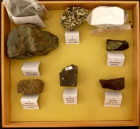 Des échantillons de roches caractéristiques de la croûte océanique et des roches volcaniques illustraient notre animation :