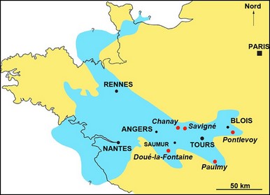 le nord du bassin de la Loire. Elle s'étendait au nord de la Vendée, sur la Bretagne orientale, la partie centrale du Cotentin, l'Anjou, la Touraine