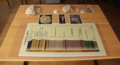 Des échantillons de roche étaient également exposés et mis en relation avec les différents niveaux de la coupe du Lutétien : sables glauconieux, calcaire à nummulites, calcaire à Ditrupa, calcaire à milioles, calcaire à potamides et ampulines, etc..
