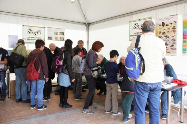 Une nouvelle fois, la SAGA était présente à ce rendez-vous annuel proposé par le Muséum, les 12 et 13 octobre dernier. Les animations étaient réparties sur l'ensemble du Jardin des Plantes et de l'îlot Buffon-Poliveau. Mais pour cette édition, un "mini-village" regroupait six ateliers sur l'esplanade devant la Grande Galerie de l'Evolution. C'est là que la SAGA a présenté son atelier intitulé : Les fossiles marqueurs du temps.