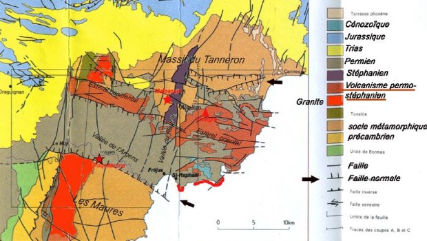 Notons qu'il n'y a pas d'affleurements du Mésozoïque dans l'Estérel.