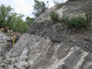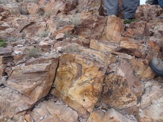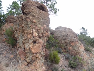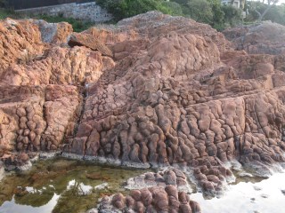 Après le Rastel d'Agay, nous revenons vers Saint-Raphaël et effectuons un dernier arrêt à la carrière d'estérellite des grands Caous. Nous n'avons pas l'autorisation de pénétrer dans l'exploitation mais nous pouvons observer les rochers d'estérellite à l'extérieur de l'enceinte.