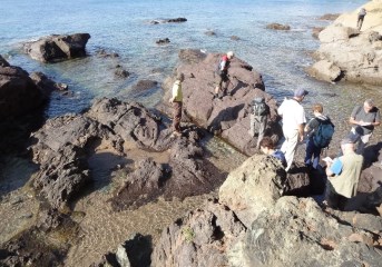 La matinée du premier jour a été consacrée au parcours de la côte entre Saint-Raphaël et la pointe de Pierre Blave. Sur quelques kilomètres seulement, nous y effectuons quatre arrêts qui permettent de découvrir plusieurs formations caractéristiques de l'Estérel.