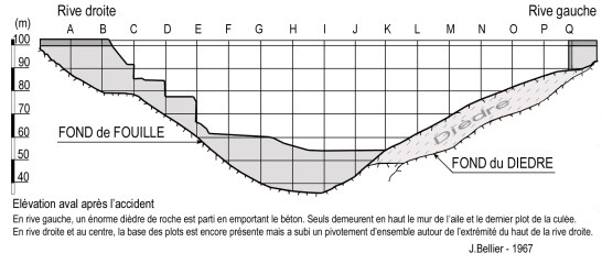 ![]() Elévation aval après l'accident Source : Coyne et Bellier |